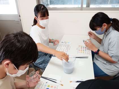 「細かいな〜」と筆と格闘中