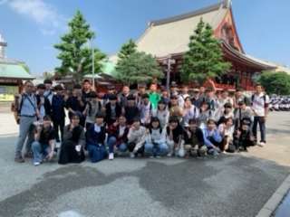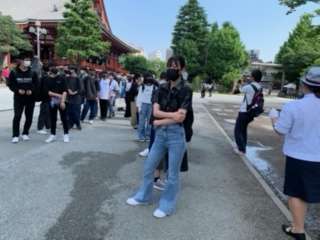 体験場所に予定より早く着いたので、浅草を少し散策しました。クラス全員で記念撮影もしました。