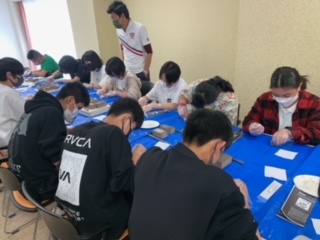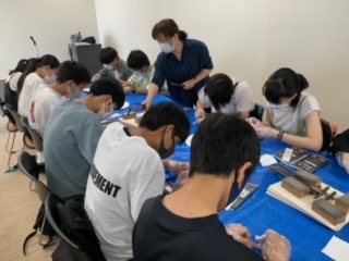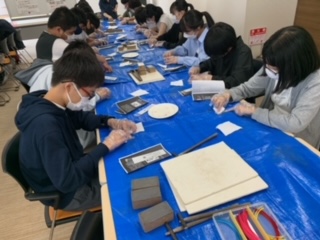 銀細工を磨く工程を体験しています。磨くとピカピカに光ってくることを体感して、感嘆の声が聞こえてきました。