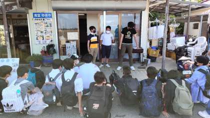 佐久島の野外生活をネタにしたお笑いライブで感謝の気持ちを宿の方々に伝えました。