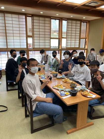 修学旅行最後の食事は、日本最古の天ぷら老舗、浅草雷門となり、三定(さんさだ)さんでいただきます。わくわく(^^)/