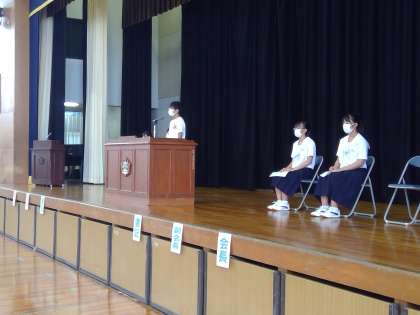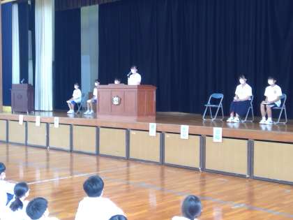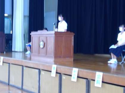 後期生徒会役員選挙が行われました。2年生からは会長、副会長、書記2名と合わせて4名の生徒が立候補しました。体育館で多くのみんなの前で話すのに緊張気味の様子でしたが、心をこめて堂々とした素晴らしい演説でした。言葉一つ一つからあふえる情熱が伝わってくるものでした。