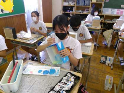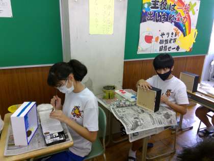 本日行われた美術競技会の様子です。静寂な雰囲気の中で作品づくりに没頭する生徒たち、ものすごい集中力が感じられました。黙々と作業に取りかかる真剣な眼差しがとても印象的な1組でした。