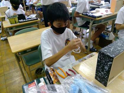 明るくにぎやかな4組、美術競技会では静寂な空気の中でそれぞれが作品づくりに集中していました。みんなとてもいい顔をしていました。