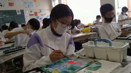 こちらは4組の様子です。適度な緊張感の中で、自分の作品をよりよいものにしようという姿勢が見られます。作品作りに真剣に取り組む網とする空気をみんなで作ることができていますね。