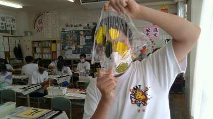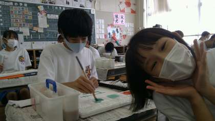5組はわきあいあいとした雰囲気で作品作りに取り組んでいました。混色や濁色を意識しながら色を塗ることができていました。素敵な作品ができあがるといいですね。