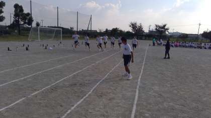 第1走者が、じゃんけんによりコースを決めました。スタートダッシュが決まると、クラスに勢いが生まれます。