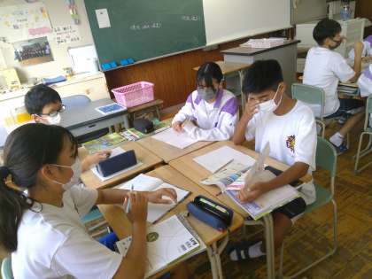10月に入って初日の授業、今週から体育祭にむけて本格的に忙しくなる岩中生ですが、授業ではグループでの学び合いを楽しみながら、熱心に取り組んでいるようです。この日の社会の授業では、日本の地域的特色と課題のまとめを行いました。これまでの学習をふり返り、語り合う生徒たちでした。