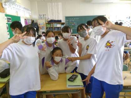 体育祭特別日課が続きます。給食を食べたらすぐに清掃、そして短活が続くため昼休みの時間は今ほとんどありません。そんな中でもちょっとした時間を各学級楽しそうに過ごしているようです。ほっとできるひとときにこんな笑顔いっぱいの生徒たちでした。