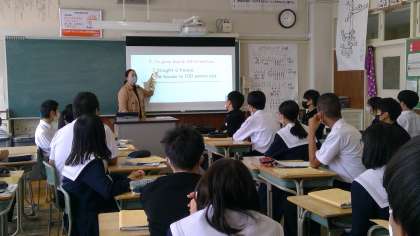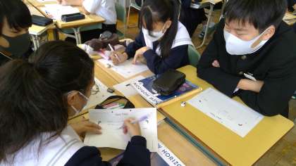 今日の英語は、ALTのエリカ先生の授業です。エリカ先生の話す英語を一生懸命聞き取ろうとしています。習った文法を確認したり、クイズを作ったりしました。英語を少しでも理解できると楽しいですね!