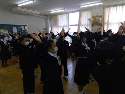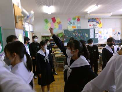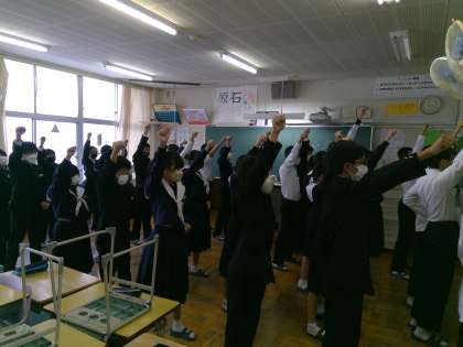 それぞれの学級で学級の部門の動きの最終確認をする生徒たち、どのクラスもいい仕上がりです。週のはじめですが、とてもいい表情でいいスタートをきることができたようです。