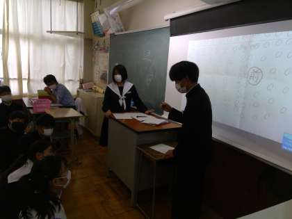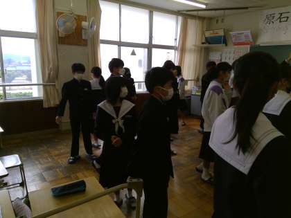 それぞれの学級で学年パフォーマンスの最後に学年全員で行う動きと決めポーズを確認をしました。リーダーたちが説明をし、それに必死にこたえようと頑張る2年生でした。
