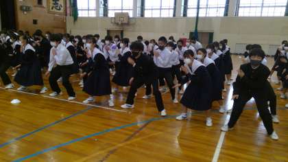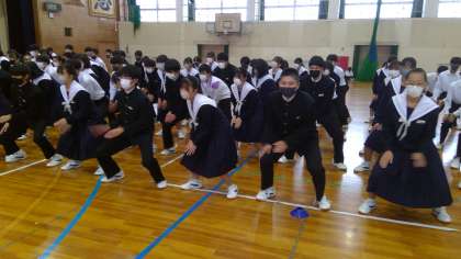 腰を落とした姿勢が長く続きますが、気持ちと音をそろえることに集中して演技します。