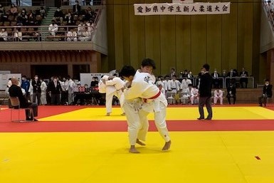 11月3日(木)愛知県武道館で、中学生の新人大会(団体戦)が行われました。本校からは、市内の道場で練習している生徒が、学校の代表として出場しました。団体戦は5人で行われるのですが、2人をけがで欠いてしまい3人での戦いとなりました。