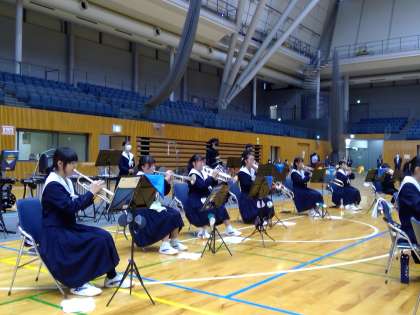開会式が終わってまず行われたのが吹奏楽部による演奏でした。この日のために一生懸命練習してきた吹奏楽部員の演奏に懸ける真剣な思いが伝わってきました。