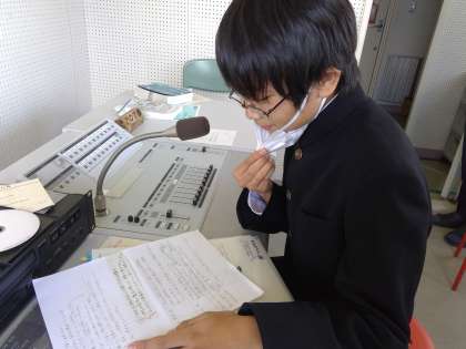 放送による文化祭の閉会式が行われました。放送室で生徒会長より全校生徒にむけて熱いメッセージが語られました。