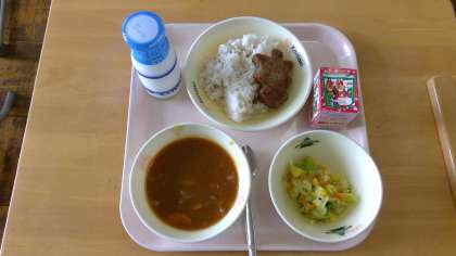 2学期最後の給食 公開日 2022/12/22 更新日 2022/12/22 3年 2022年食べ納めの給食でした。 献立は、麦ごはん、カレー、牛乳、ハンバーグ、ブロッコリーサラダ、イチゴケーキ、でした。明後日のクリスマスイブを前に、一足早くケーキをいただきました。 明日は終業式。明後日から冬休みが始まります。本来なら楽しいクリスマス、お正月を迎えるところですが、受験が終わるまでは、「クルシミマス」を迎えることになると思います。 いいね(4)