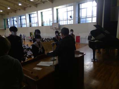 ポスターや書道など文化部門の表彰伝達が行われました。個人として努力し、輝かしい成果を見せてくれた生徒たち。