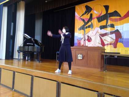 終業式に校歌が歌えることがとても嬉しいですね。指揮者、伴奏者が気持ちを入れて頑張っている姿がとてもいいなあと思いました。