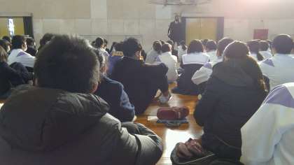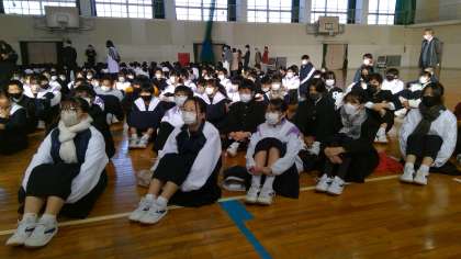 冬休みの生活についてのお話、その後の、学年主任の先生からのお話も集中して聞く姿勢が見られました。岩崎中学校1年生として過ごせるのはあと52日です。限られた時間をより充実したものにするためにはどのように過ごしていけばよいのか、どのような「志」をもって生活すればよいのか、この2週間で考えられるとよいですね。