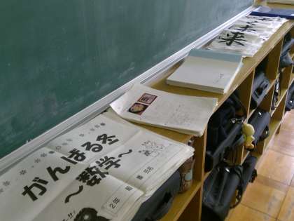教室のロッカーの上にずらり並んだのは提出された冬休み課題です。きちんと提出することはできたでしょうか。課題の中には家庭科の授業で、冬休み中に魚料理を作ったものを報告するものがありました。「鮭のムニエル」「シーフードカレー」「寄せ鍋」など様々な料理の写真が添付されたプリントが提出されました。調理の話を聞くと、とても嬉しそうに話してくれる子が多くいました。よりよい経験になったことを嬉しく思いました。