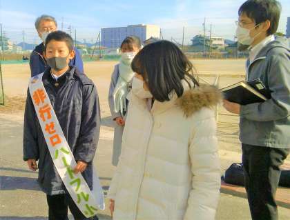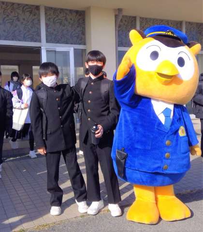 小牧警察の方々をお招きし、生徒会が薬物乱用防止啓発運動を行いました。愛知県警察のマスコットキャラクターである「コノハけいぶ」に興味津々な生徒達でした。
