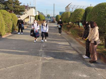 本日、PTAのあいさつ運動を行いました。まだまだ朝は寒さが身にしみますが、生徒たちの元気な登校の様子が見られました。3年生は今日から私立高校の一般入試のため、いつもより少ない登校でした。