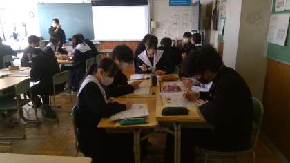 昨日私立高校の一般入試が終わり通常の授業に戻っています。難しい英文に取り組んでいました。