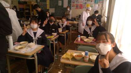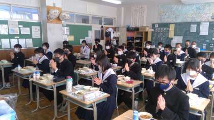 このメンバーで給食が食べられるのもあと少しです。笑顔がいいですね。