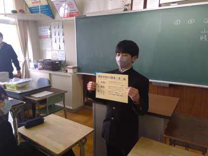 今日から保健委員会主催の「TK2キャンペーン」が始まりました。TK2とは、「体調管理」と「手洗いと換気」の徹底という意味を表しています。休み時間には寒くても教室の換気をし、岩崎中学校全体でコロナやインフルエンザに負けないように健康に気をつけて元気に過ごしていきたいですね。真剣な眼差しで呼びかける保健委員の生徒でした。