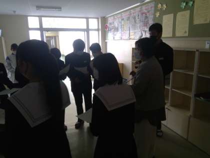 昼休みに集まっていたのは給食委員会の生徒たち。来週から始まる「第3回骨々キャンペーン」にむけての準備について確認している様子でした。12月に行われたこの企画の際に毎日1本も残らず牛乳を飲んだ2年生、学年みんなで残さず牛乳を飲んでカルシウムをしっかりとっていきましょう!
