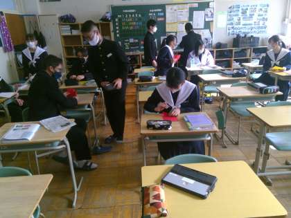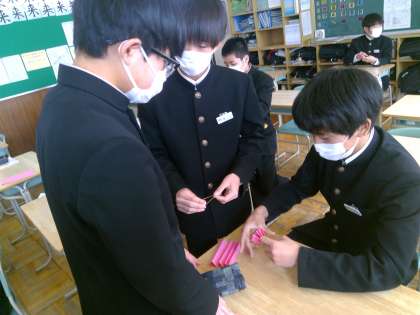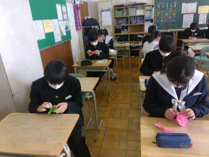 予餞会に向けて何やらクラスで作っている様子の2年生でした。笑顔で楽しそうに取り組んでいる姿が印象的でした。