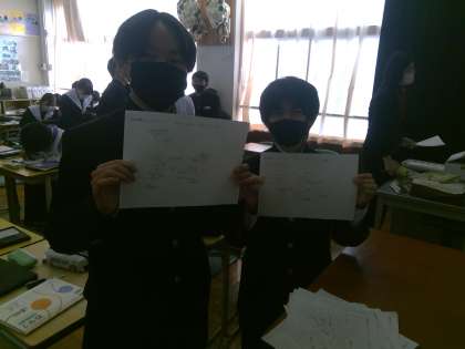 2年生は社会の授業で、北海道地方の学習において「観光マップ」をつくりました。雄大な自然環境や歴史的な事象、お勧めのグルメなどを工夫して地図にまとめました。それぞれが工夫して楽しみながら取り組んでいたのがいいなあと思いました。