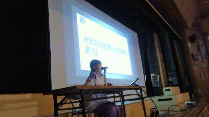 こちらは、発表の様子です。パワーポイントを上手く使いこなし、堂々とした態度で話すことができていました。発表者の方に顔を向けて真剣に話を聞く姿勢も見られ、演者と観客が一体となった素晴らしい発表会になりました。