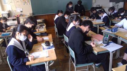 英語の時間では文法チェックのプリントをやっていました。分からないところを先生に聞いて理解しようとしていました。
