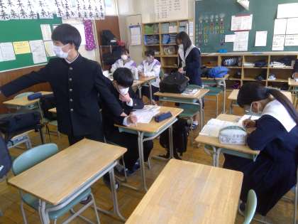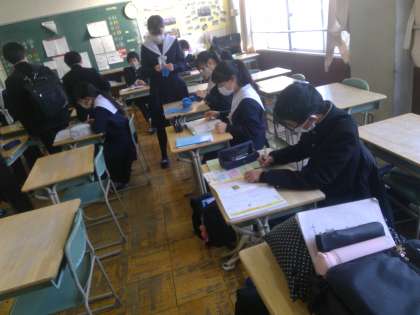 教育相談の裏では、教室でそれぞれがテスト勉強に励んでいます。難しい問題などについては、友達同士で教え合う姿が見られました。学習への意識を高め、日々の生活において勉強していこうという雰囲気をつくっていきたいものです。みんな頑張りましょう!