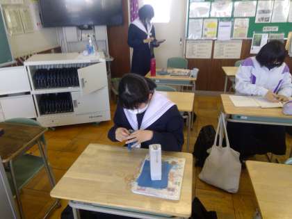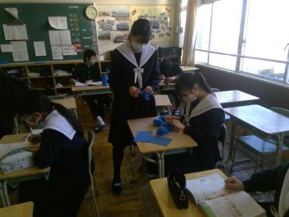 予餞会に向けて教室で日々つくられる花飾り、係の生徒だけでなく学級みんなで協力してつくっていこうという雰囲気がとてもいいなあと感じられました。