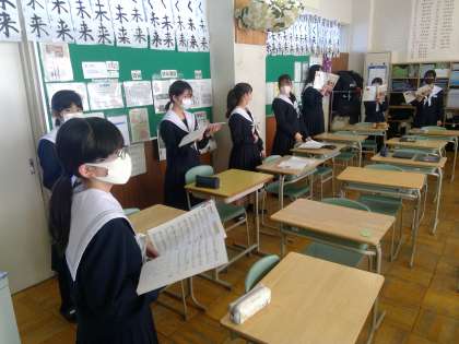 合唱練習にも熱が入る2年生、今日の練習ではこれまで以上に本気で歌おうという姿がたくさん見られました。一生懸命声を響かせようという姿は人の心を動かします。見ている人を幸せな気持ちにさせるそんな歌声が響いた今日の練習でした。1日でずいぶん歌う雰囲気が変わり、ずっとよくなったことが何より嬉しく思いました。