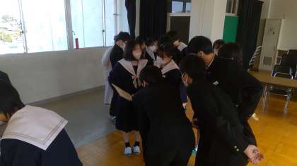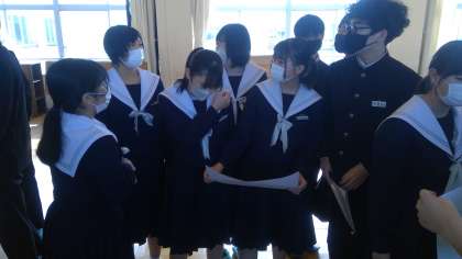 給食後の時間に合唱パートリーダーが集まり、並び方の確認をしていました。