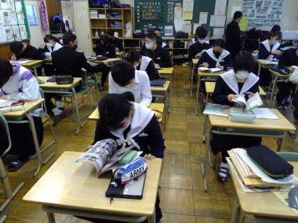 朝の教室は静寂な時間が流れています。みんな真剣にテスト勉強に励む生徒たち、学年末テストに向けて気合い十分です!