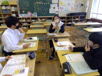 教育相談を待つ教室では、生徒たちがテスト勉強に励んでいます。わからないところを友達同士で教え合う生徒たち、また黙々と問題演習に取り組む集中力の高い生徒たち、テストまであと2日!!テスト勉強にも熱が入ります。