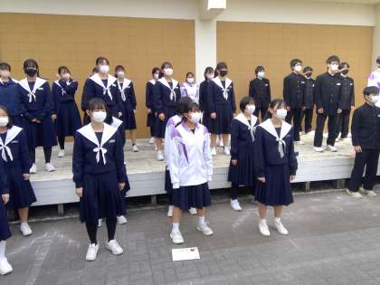 熱が入る合唱練習、この日は中庭で全体練習を行いました。まだまだ音程が安定しない男声パートなど、課題はありますが、やる気はひしひしと感じられます。本番までに男声パートと女声パートが美しいハーモニーを奏でてくれることを期待したいと思います。歌う気持ちが「本気」になれば、どこまでも頑張れます。気持ちをつくっていきたいですね。
