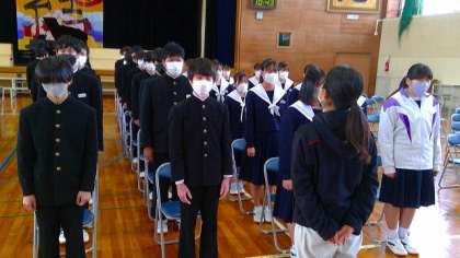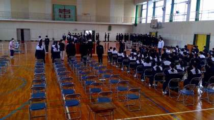 今日は、証書を受け取る練習をした後、入退場の練習をしました。その後、式全体の流れを確認して、合唱練習を行いました。