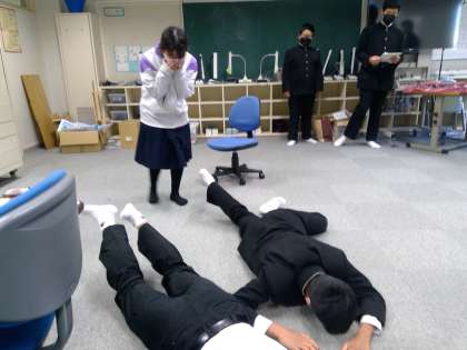 朝の時間をつかって予餞会にむけての劇の練習に励む生徒たち、練習を重ねるたびに凄みが増してきました。楽しみながら、セリフになかった言葉がアドリブとして出てくるこの余裕!愉快な寸劇が生徒たちの個性と相まってより楽しいものになりそうです。明日は学年リハーサルがあります。気合い十分の生徒たちでした!