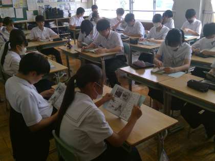 今日も朝から各学級でしおり学習会が行われていました。修学旅行に不安を残さないように、真剣に話を聴く生徒たちでした。各係と多くの人が協力して完成したしおりです。隅々まで中身を確認し、万全の準備をしていきたいですね。