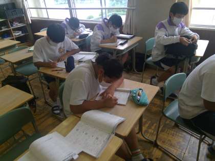 教育相談の裏では、各教室でテスト勉強に励む生徒の姿がありました。わからない問題を教え合う子もいれば、黙々と取り組む姿もあり、それぞれでした。今日からテスト週間、受験生としての意識をもって頑張ってほしいと思います。