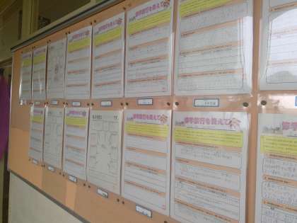 各教室の廊下には、修学旅行のふり返りが掲示されています。楽しかった3日間の思い出をふり返り、そこに向けて頑張ったこと、みんなのために頑張ってくれた仲間のことを記したものです。ぜひ明日の学校公開日でお越しの際にはご覧ください。