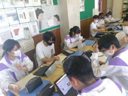 プレゼン作りにおいて発表原稿に取りかかる生徒たちもいました。自分たちのつくったものをどう伝えるか。発表の仕方はそれぞれの班の見せどころですね。発表会が楽しみです。