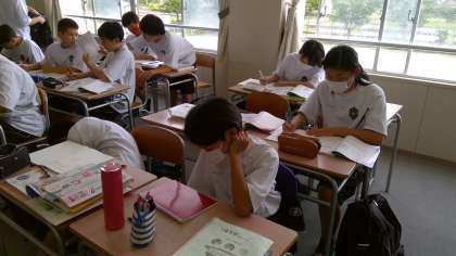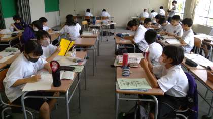 初めての定期テストに向けて、1年生では自習室を開放しています。日に日に人数が増えて、今日は一つの教室に収まりきらないほどの生徒が、自主的に残って勉強していきました。すばらしい!!