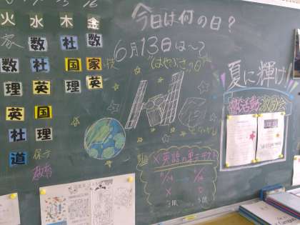 毎日背面黒板を見るのが楽しみな3年4組の教室です。今日は何の日?6月14日(水)